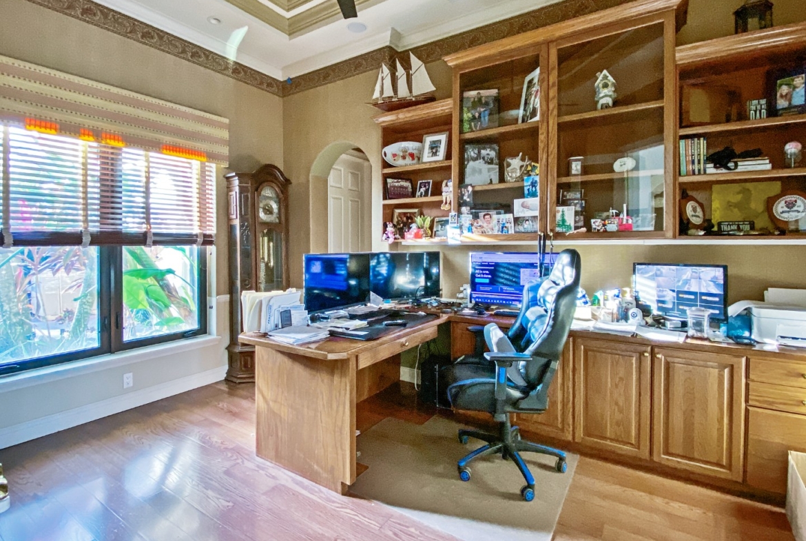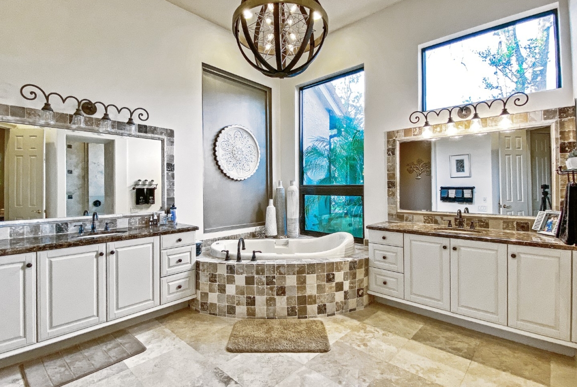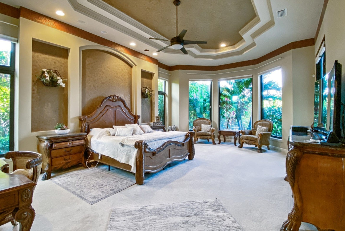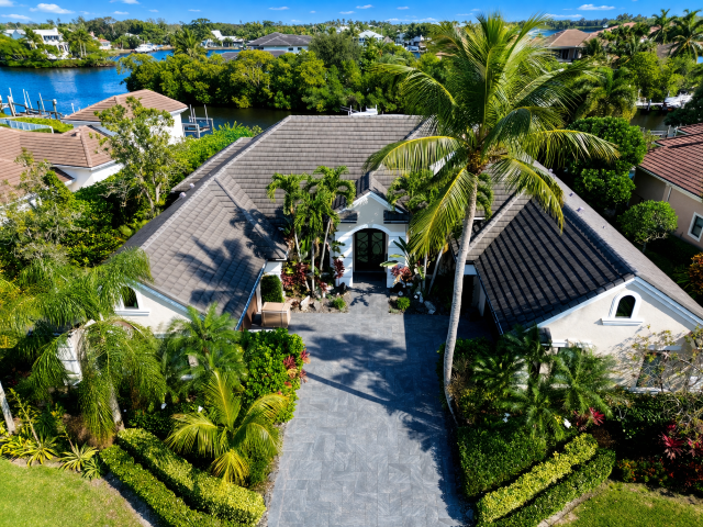 No Fixed Bridges, Ocean Access. The waterfront lifestyle in the prestigious Islands of Jupiter gated community. This 4,648 SF open split floor plan with 4 bedrooms and 5 en-suite baths, a bonus room, and two oversized 2-car garages. The main level features the primary suite and two guest rooms, plus an upstairs VIP suite with a sitting area, wet bar, and private balcony with river views. Enjoy 100′ of waterfront, direct ocean access in ~10 minutes with no fixed bridges, and a private dock for 2-3 boats. Outdoor living includes a pool, spa, cabana bath, outdoor kitchen, and screened patio. Recent upgrades include a new roof, kitchen, paint, porcelain-paver driveway, and impact windows/doors. Secluded yard, full-house generator, and whole-home water system complete this move-in-ready retreat.